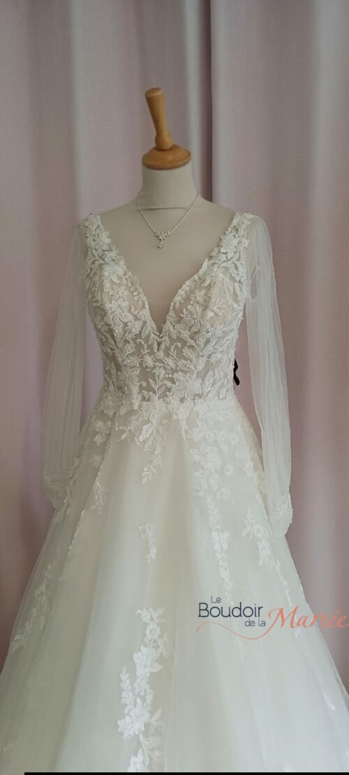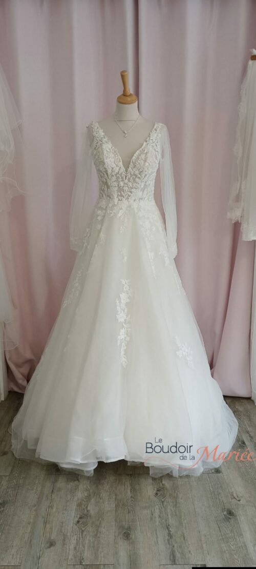 Robe aux superbes dentelles perlées et manches souples (amovibles).