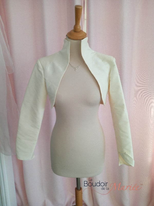 23 février 2022 Lucie Accessoires mariée Boléro mariage Boléro en polyster ivoire avec col et manches. Taille 36 Prix d’origine: 129€ Prix boudoir: 49€ réf: AC 98