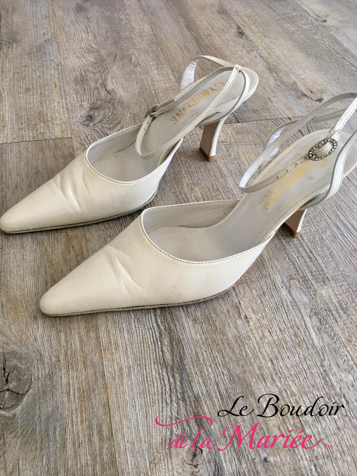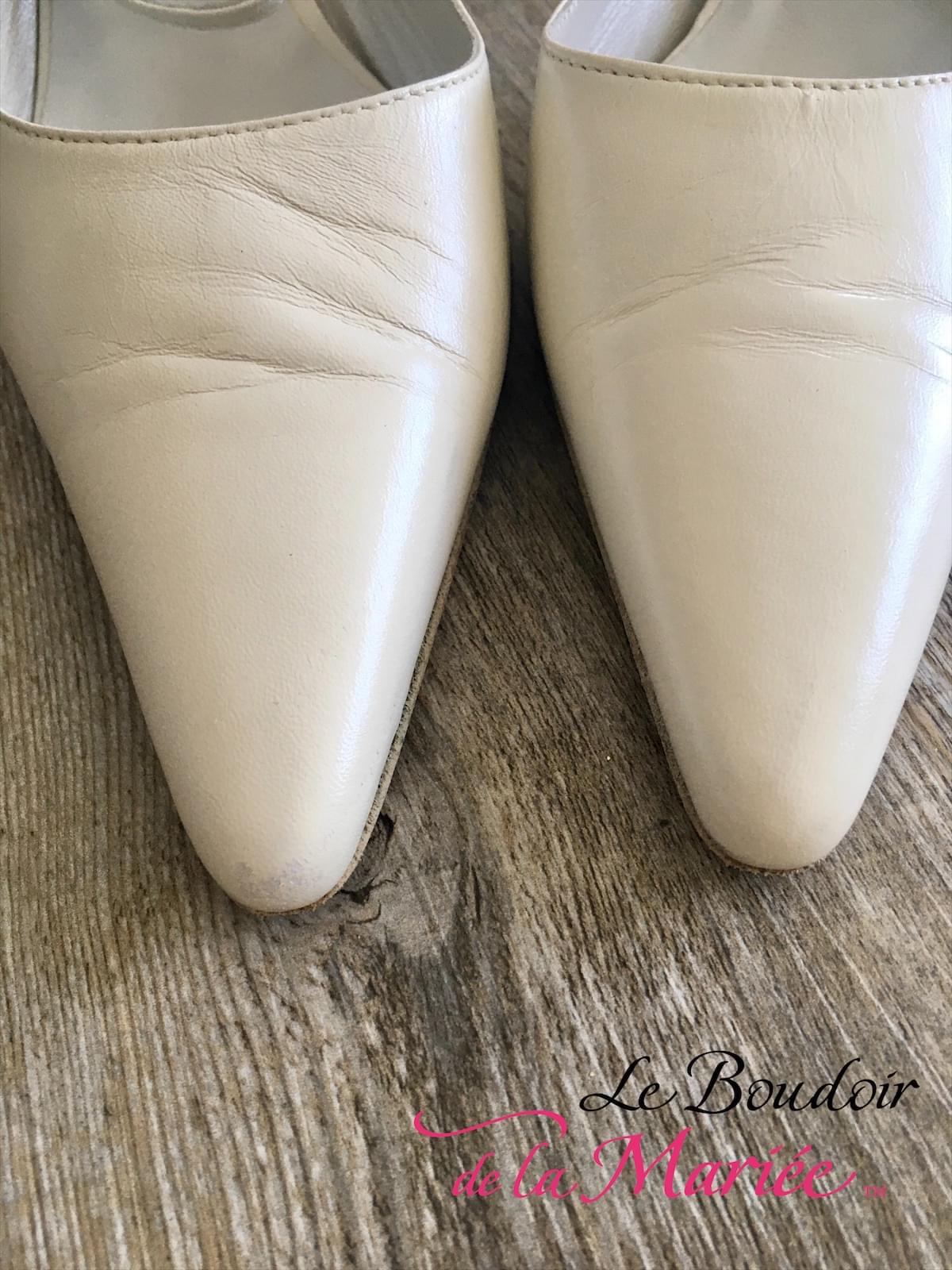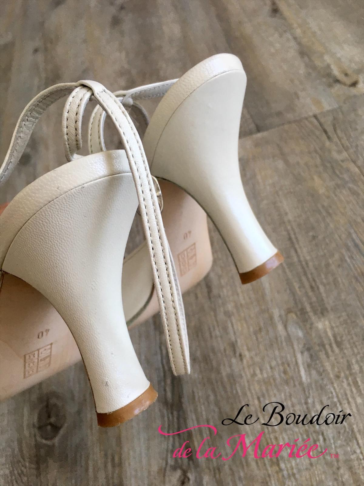 20 juillet 2020 Lucie Accessoires mariée Escarpins « Cymbeline » Escarpins de mariée « Cymbeline » Coloris ivoire Pointure 40 Talons confort de 6,5cm ref: AC 038