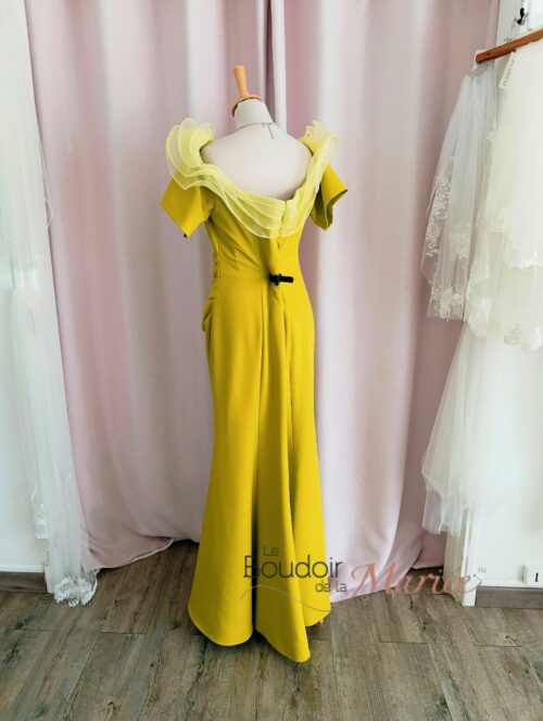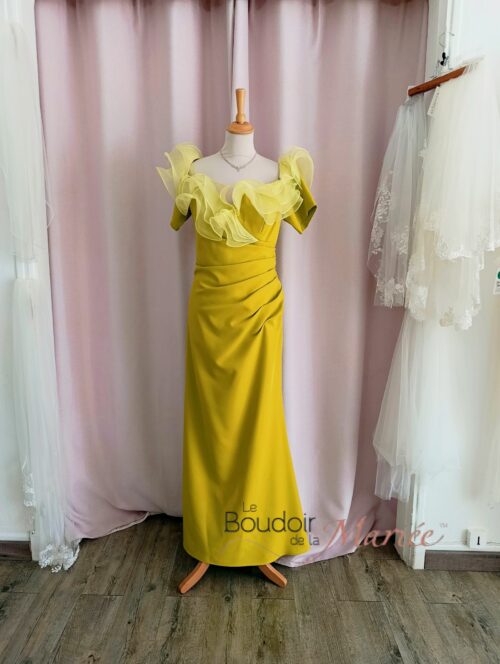 Robe de cocktail en crêpe coloris Jaune/vert anis Ana Sposa.