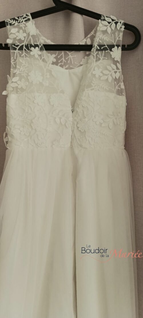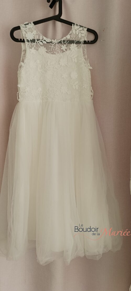 2 octobre 2025 Lucie Catalogue Fillette Tulle Robe fillette en tulle Tope en dentelles, ivoire Taille 10/11 ans Prix boudoir: 45€ Ref COR 52