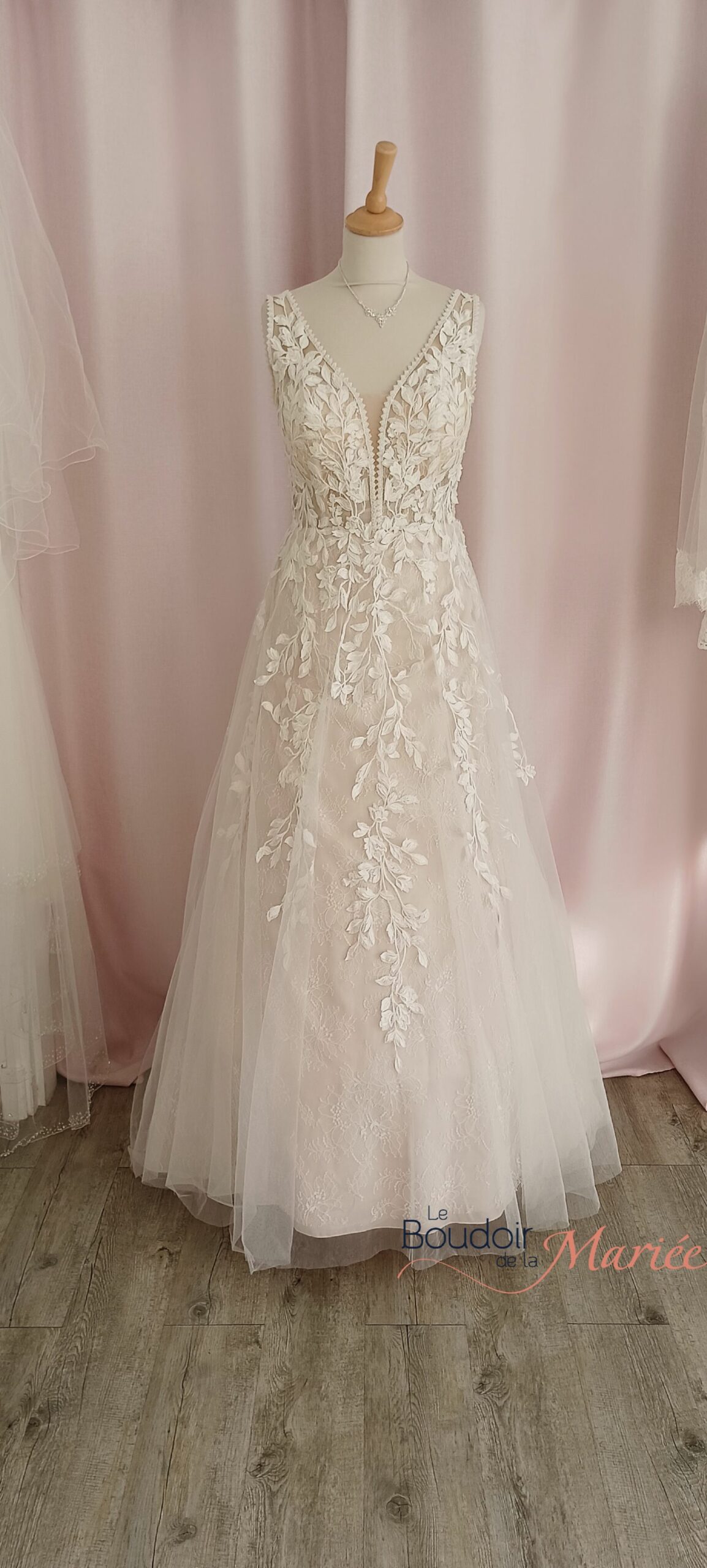 Superbe petite robe modèle Alguem (Dos Nu) de « White One » (Pronovias).
