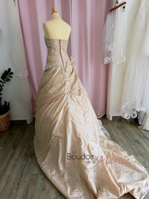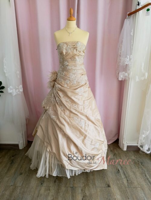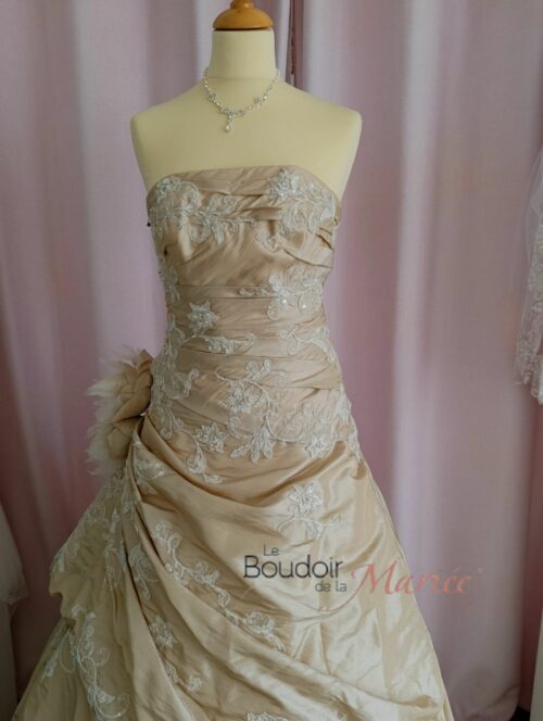 Robe de mariée traditionnelle en taffetas champagne doré modèle Aphélie « Lise St Germain ».