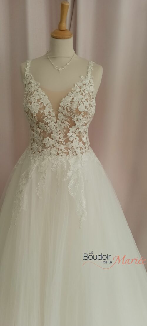 Sublime robe de mariée modèle Catherin (Dos Nu) « Hervé Mariage ».
