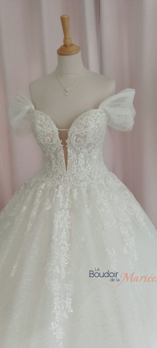 Merveilleuse robe de mariée modèle Corbusier  de la splendide marque: « Nicole Couture ».
