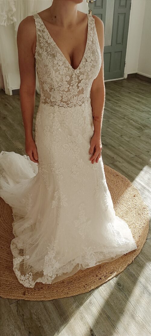 Magnifique robe de mariée tout en dentelles de la marque Sincerity.