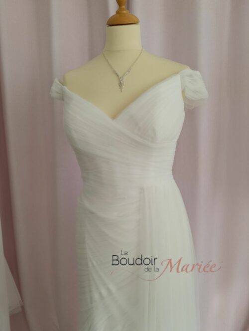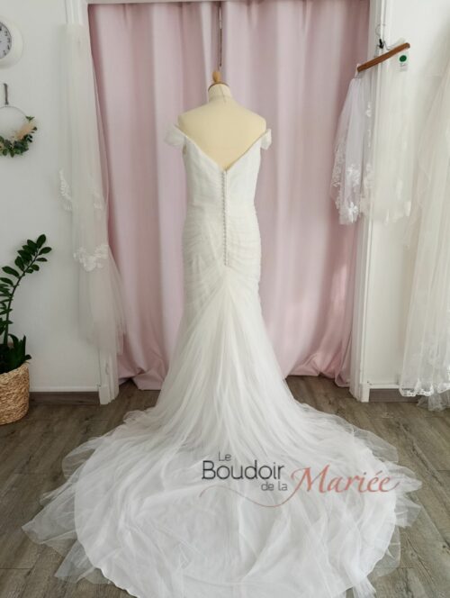 Tulle drapé sur le côté et traine.