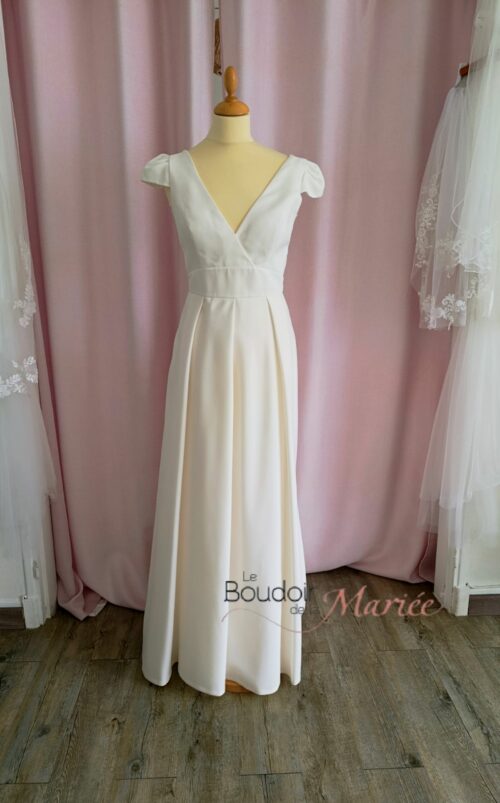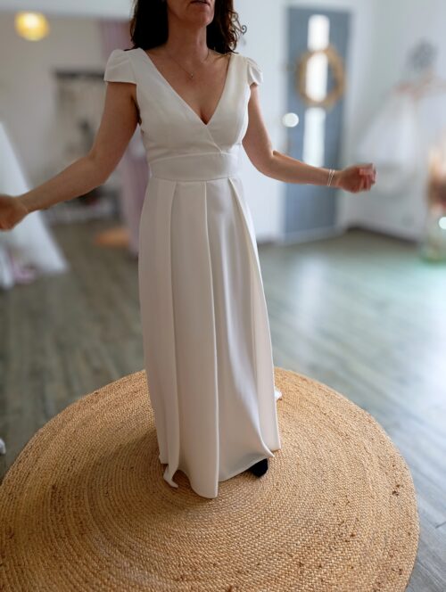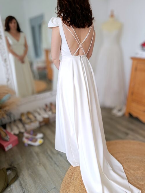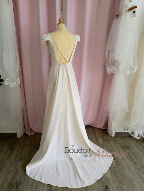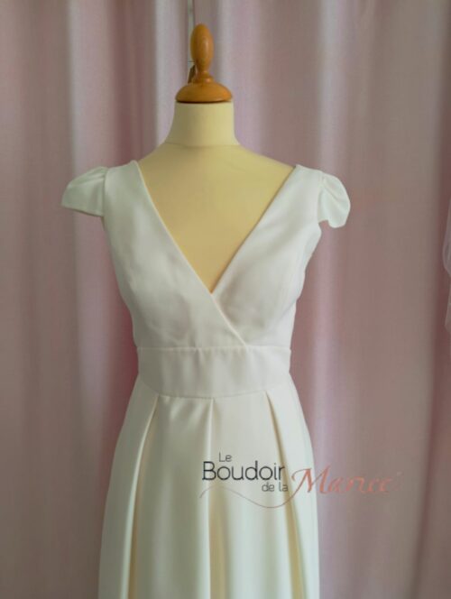 Elégante robe de mariée en crêpe souple ivoire modèle Malou (Dos Nu) pensée par Anne Delafforest pour Cymbeline.