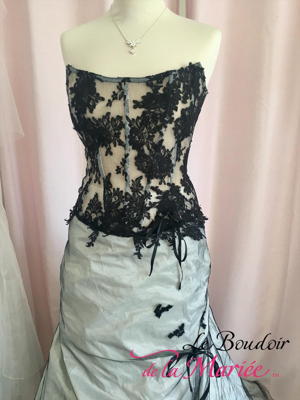 Bustier transparent baleiné et recouvert d ‘une belle dentelle de Calais noire (possibilité de doubler le bustier).