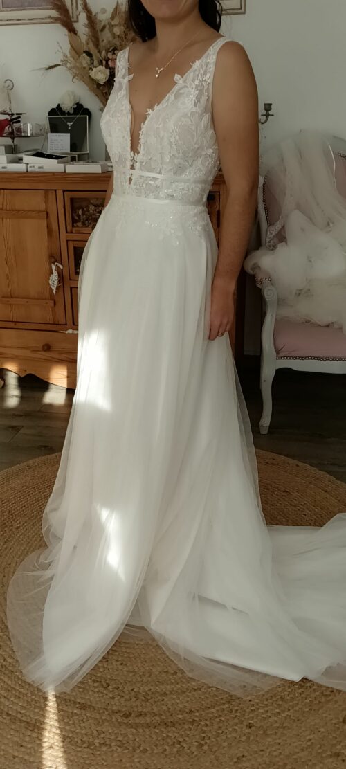 Sublieme robe de mariée modèle Taylor (Dos Nu) « Bianco Evento »