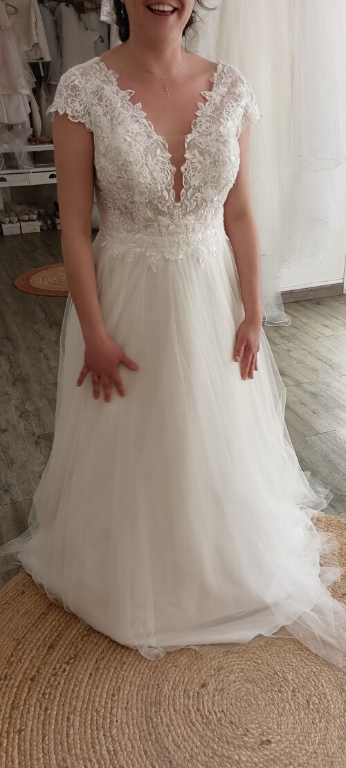 Robe de mariée de style bohème / Princesse modèle Uriel (Dos Nu) marque « Bianco Evento ».
